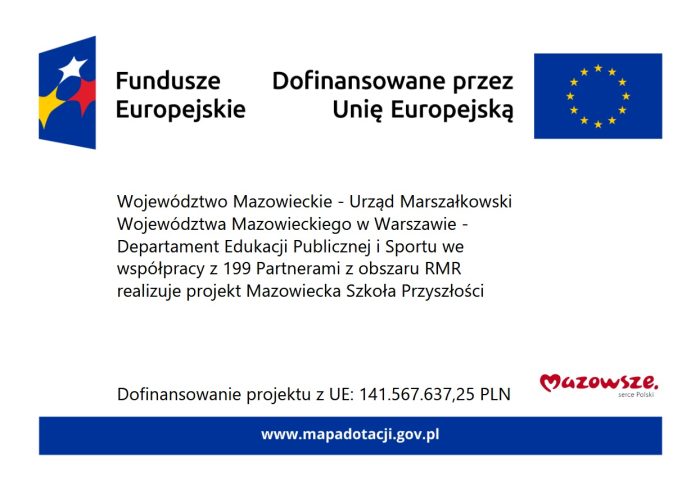 Projekt: „Mazowiecka Szkoła Przyszłości” uzyskał dofinansowanie oraz został zatwierdzony do realizacji na obszarze Regionu Mazowieckiego Regionalnego.