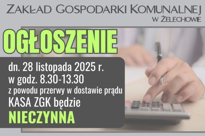 Zakład Gospodarki Komunalnej w Żelechowie informuje, że w dniu 28...