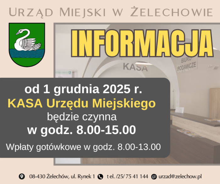 Informujemy, że od dnia 1 grudnia 2025 r. KASA Urzędu...