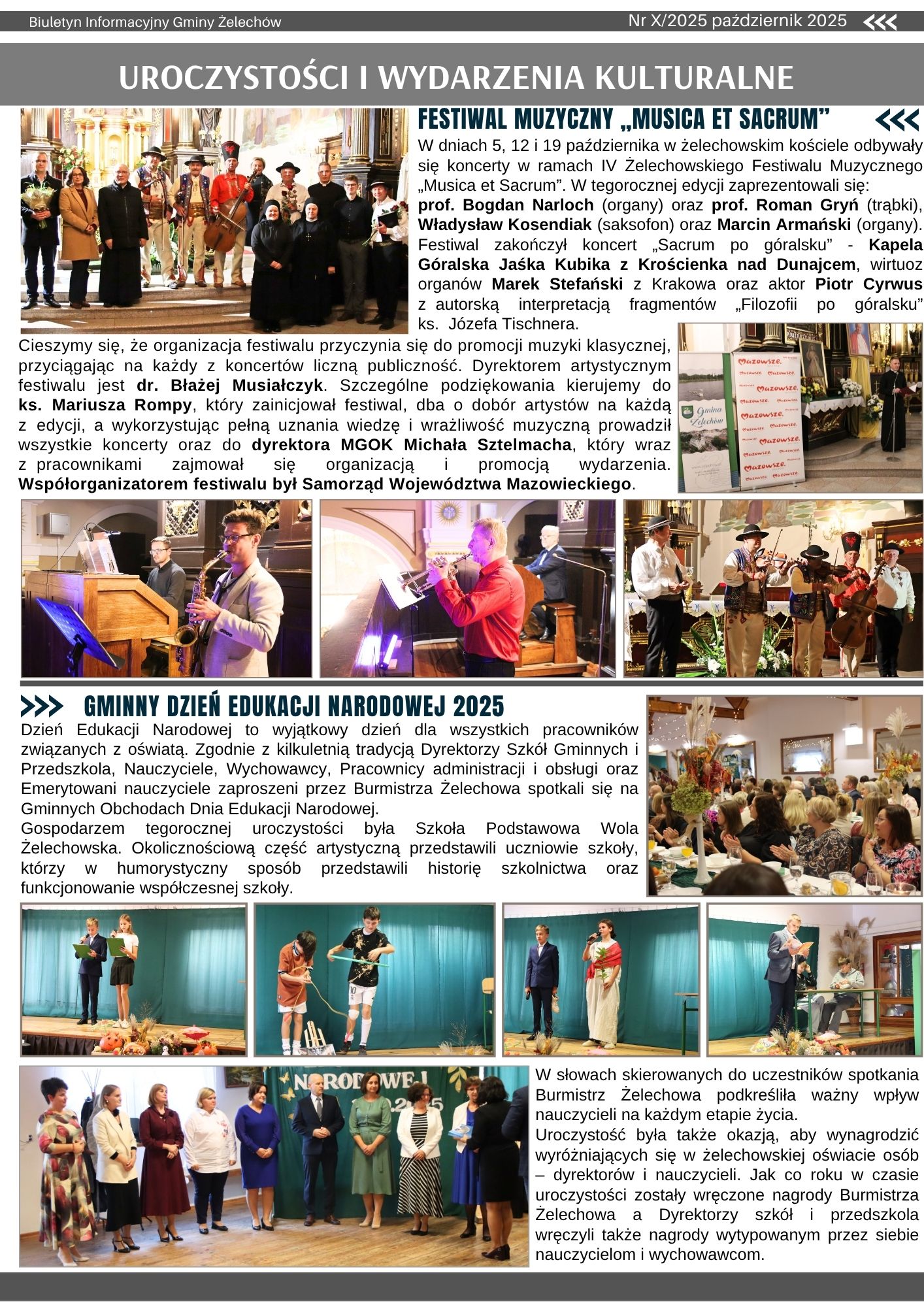 Tradycyjnie przygotowaliśmy także relacje z najważniejszych wydarzeń minionego miesiąca – IV Festiwalu Muzycznego Musica et Sacrum oraz Gminnego Dnia Edukacji Narodowej.