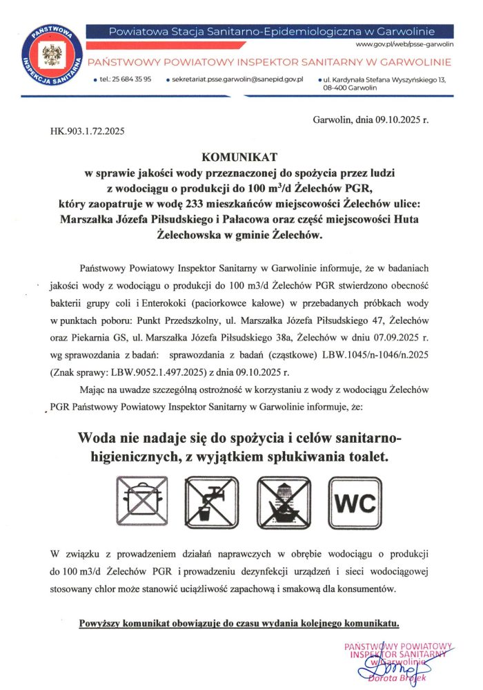Komunikat Inspektora Sanitarnego w sprawie jakości wody...