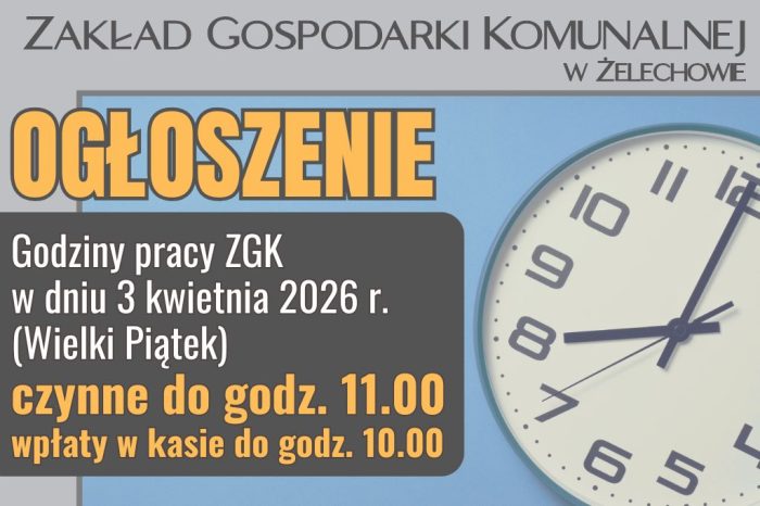 W dniu 03.04.2026 r. (tj. Wielki Piątek) Zakład Gospodarki Komunalnej w Żelechowie