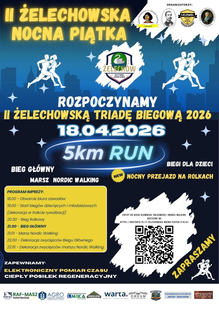 II Żelechowska Nocna Piątka odbędzie się w sobotę, 18 kwietnia 2026 r. w Żelechowie.