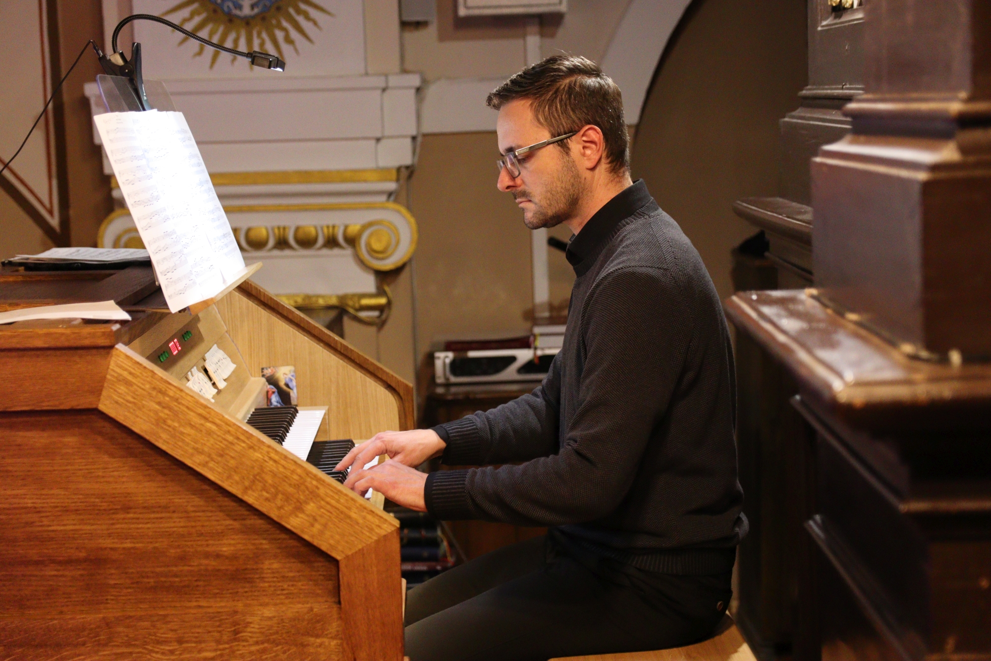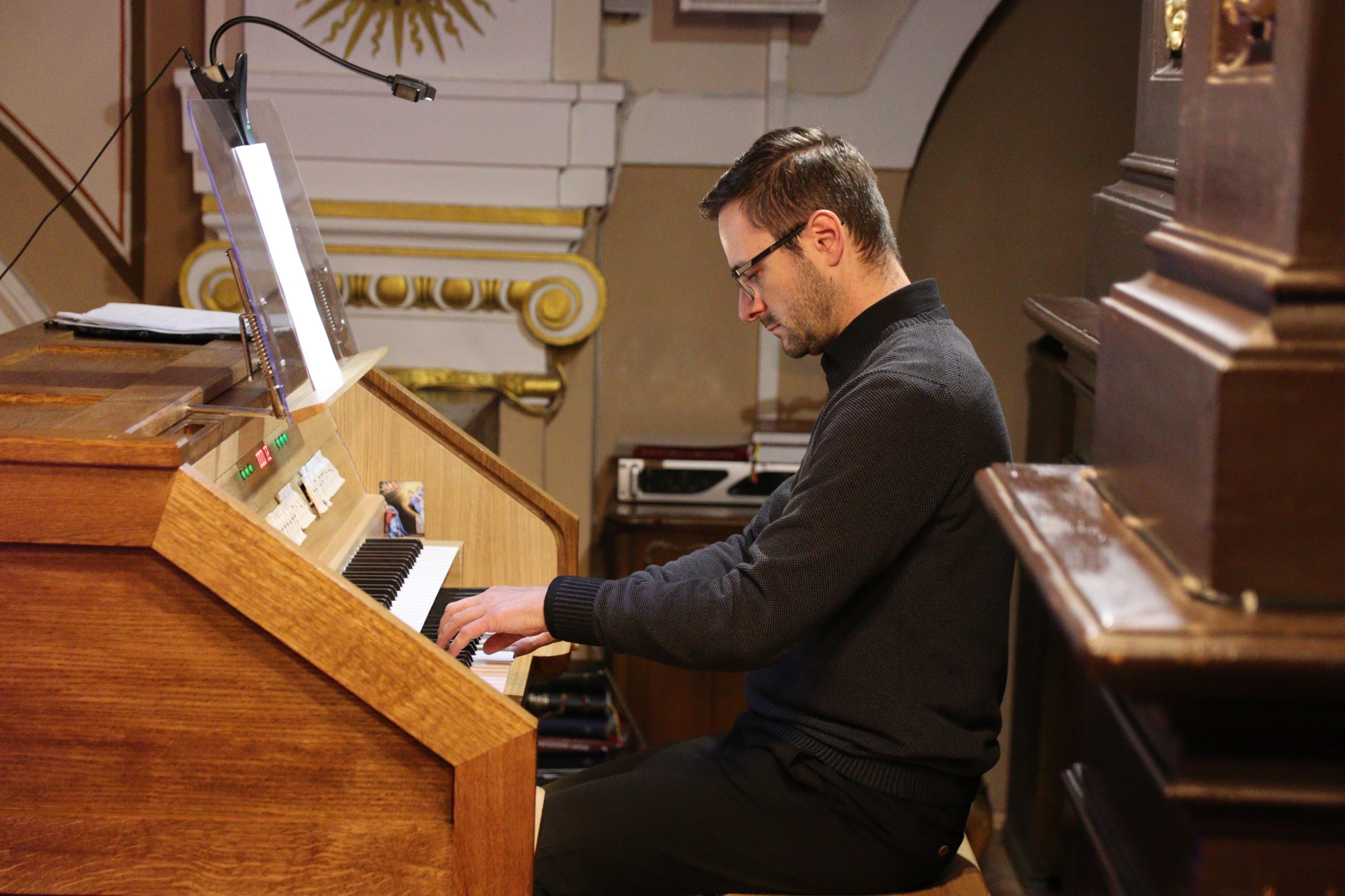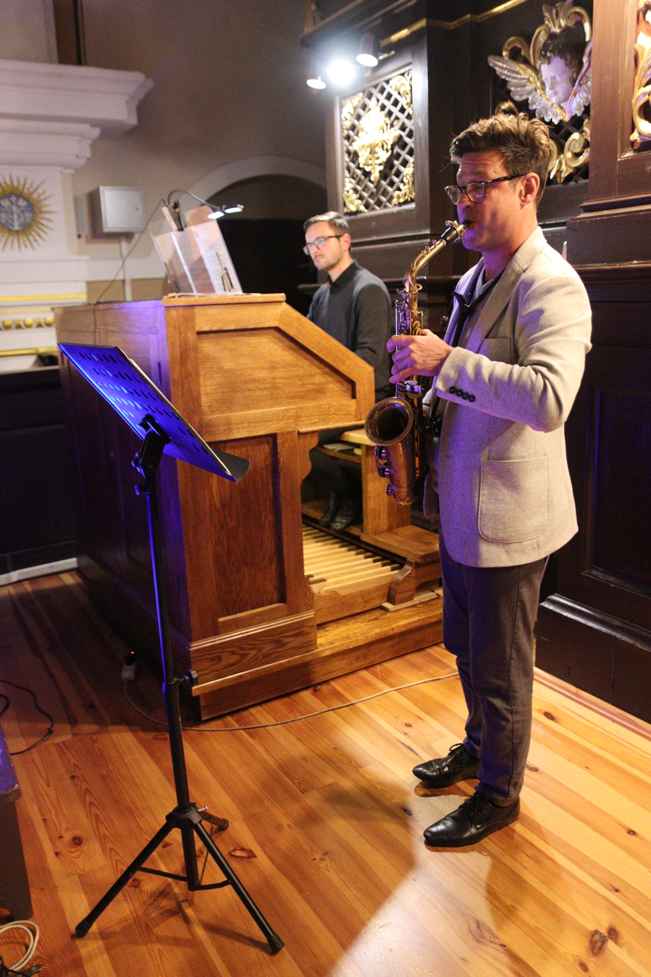Wyjątkowe wydarzenie rozpoczęła Sinfonia z kantaty „Wir danken Dir” BWV 29 Jana Sebastiana Bacha. Uroczyste brzmienie organów wprowadziło publiczność w nastrój podniosłego skupienia. W dalszej części zabrzmiały kolejne dzieła Bacha – utwór opracowany na saksofon i organy „Jesus bleibet meine Freude” oraz wykonana przez Marcina Armańskiego Fuga sopra il Magnificat BWV 733. Z dużym uznaniem publiczność przyjęła utwór „Suscepit Israel” Marcina Józefa Żebrowskiego, pełny subtelności i emocjonalnej głębi, a także opracowania takich dzieł jak „Arrival of the Queen of Sheba” z Oratorium Salomon Georga Friedricha Haendla czy Kanon D-dur Johanna Pachelbela. W żelechowskiej świątyni pięknie zabrzmiały również utwory romantyczne i współczesne takich kompozytorów jak Feliks Mendelssohn, Eugène Bozza oraz Ronald Binge.