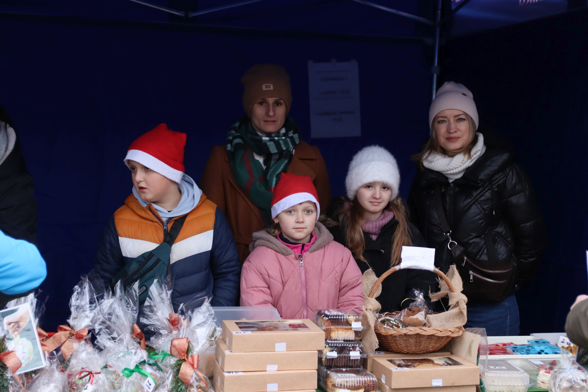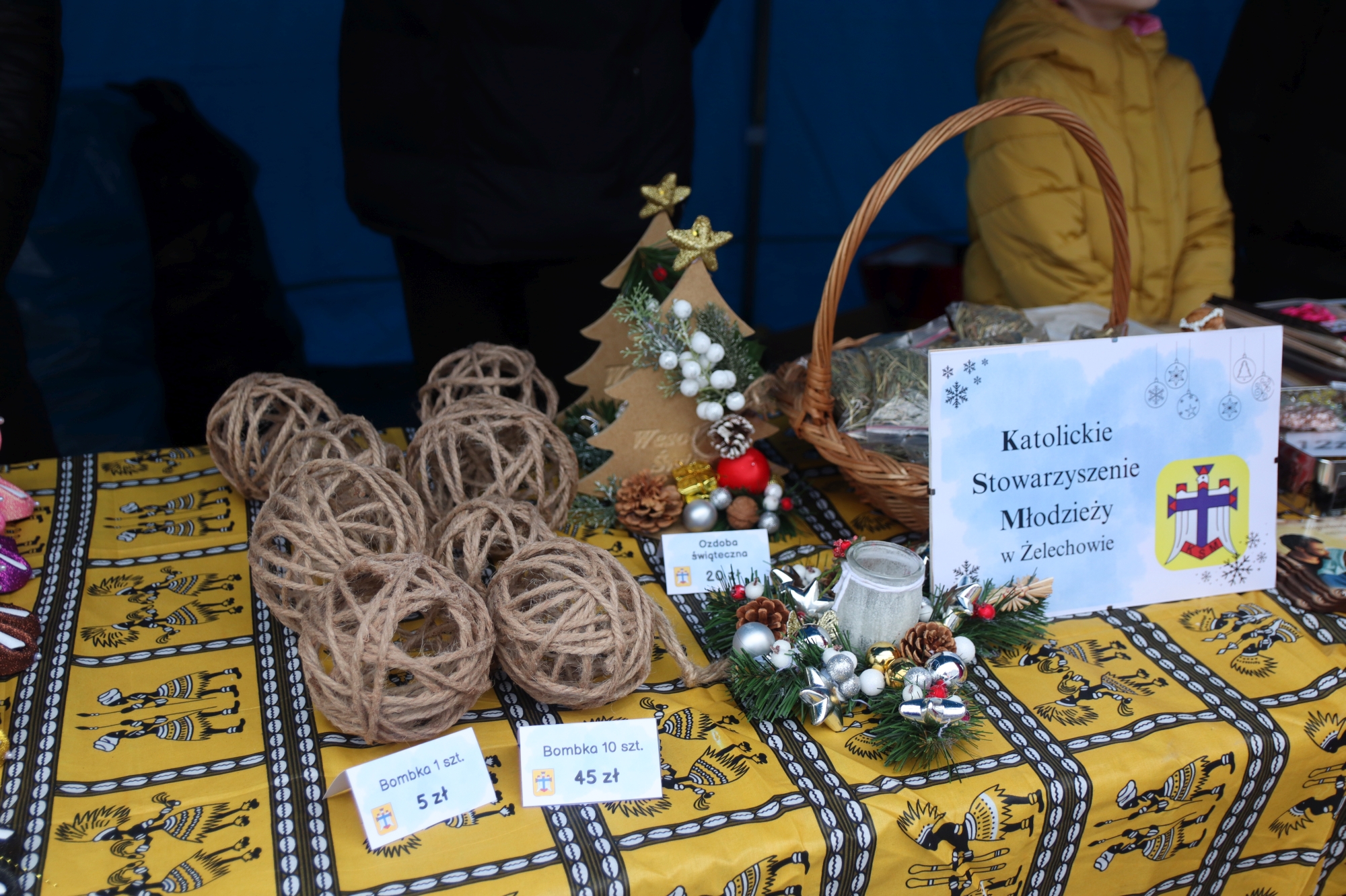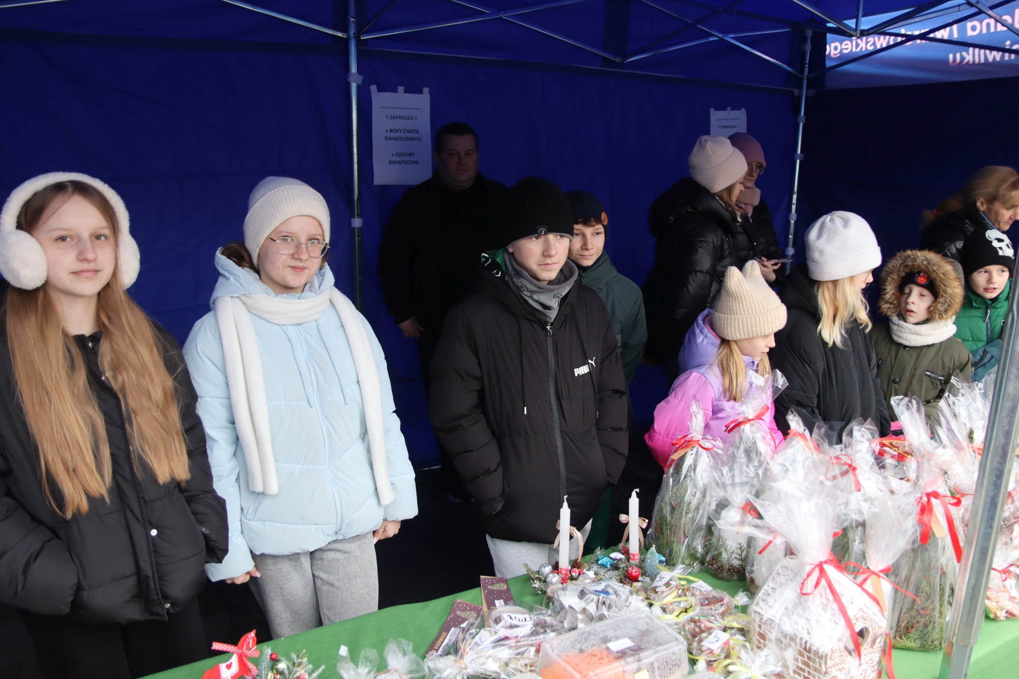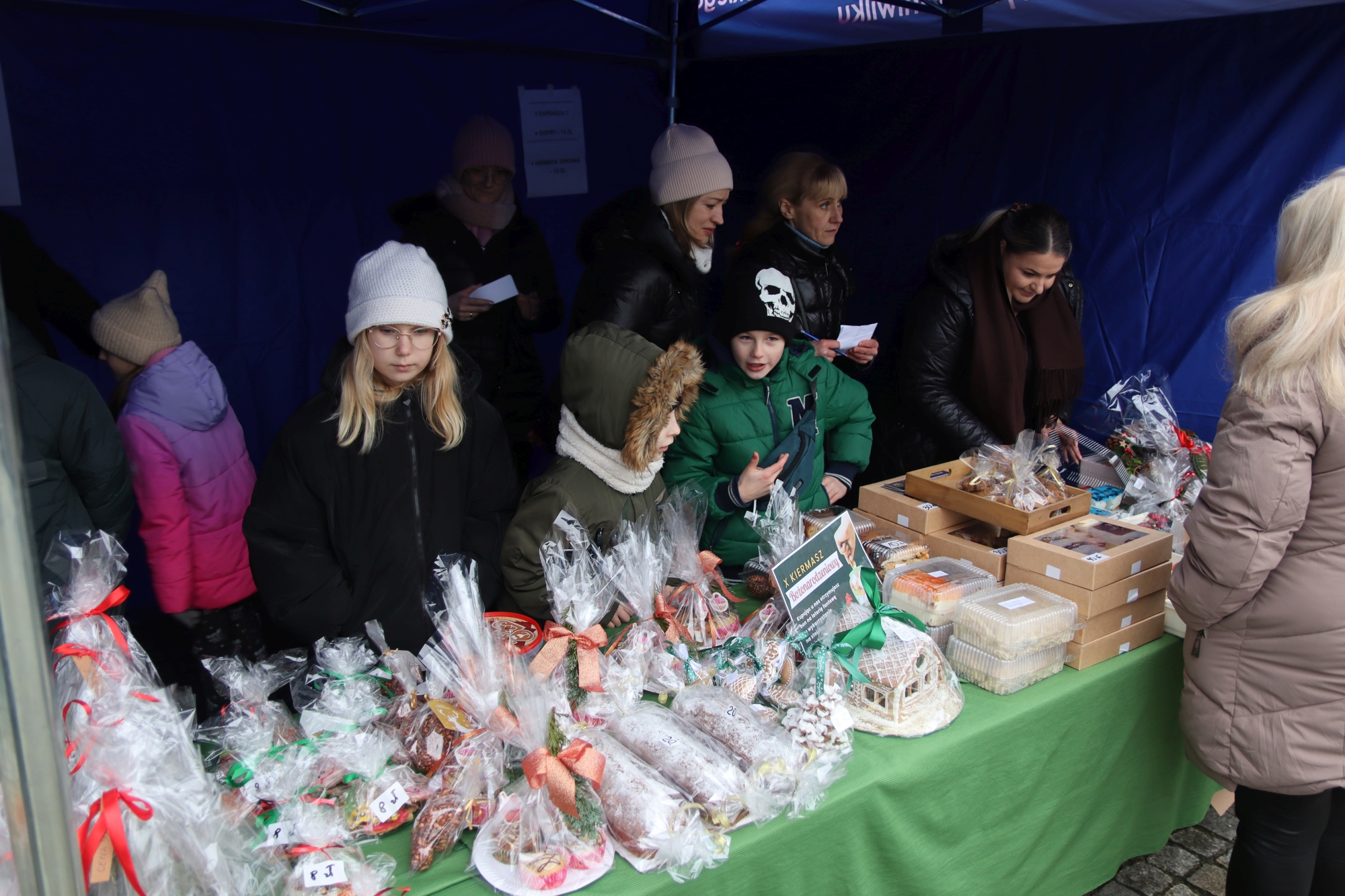 Licznie zgromadzeni mieszkańcy mieli możliwość nabycia różnorodnych wyrobów rękodzielniczych, takich jak stroiki, wianki, ozdoby choinkowe oraz kartki świąteczne. Ponadto na stoiskach można było znaleźć tradycyjne potrawy: pierogi z kapustą i grzybami, uszka, kapustę wigilijną, pasztety świąteczne, domowy chleb, zakwas z kiszonych buraków, olej lniany oraz słodkości w postaci ciast, pierniczków i chatek z piernika. Było również sianko pod wigilijny obrus oraz świąteczna jemioła. Podczas kiermaszu pracownicy MGOK i Biblioteki Publicznej prowadzili jubileuszową loterię, w której można było wylosować m.in. gminne gadżety. Na dzieci czekała bezpłatna atrakcja w postaci ruchomych sań Mikołaja, które unosiły się i kołysały. Dużym zainteresowaniem najmłodszych cieszyły się również zimowe animacje z nagrodami.