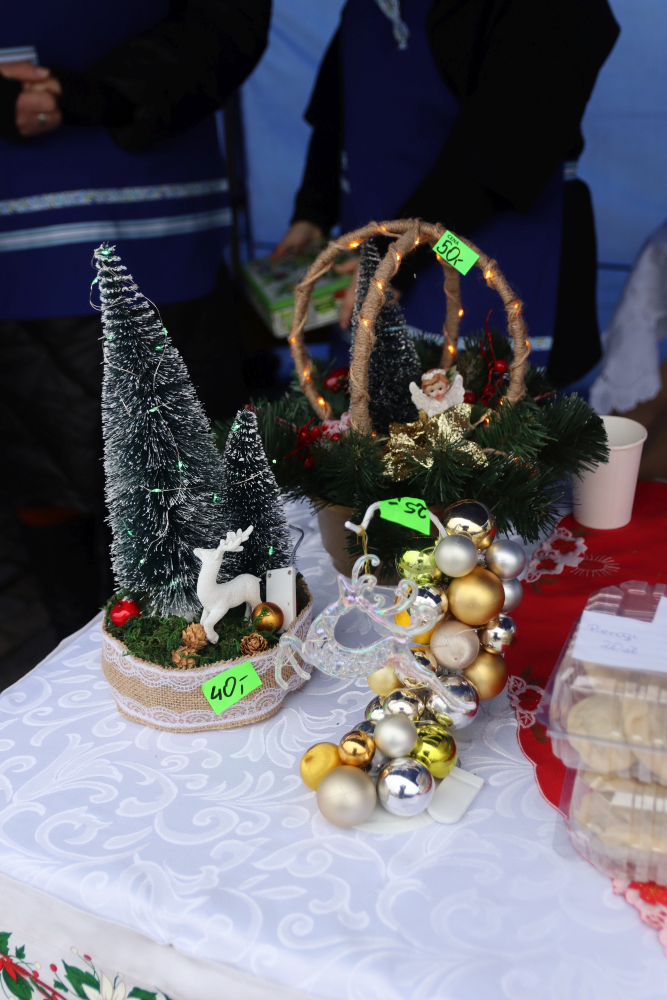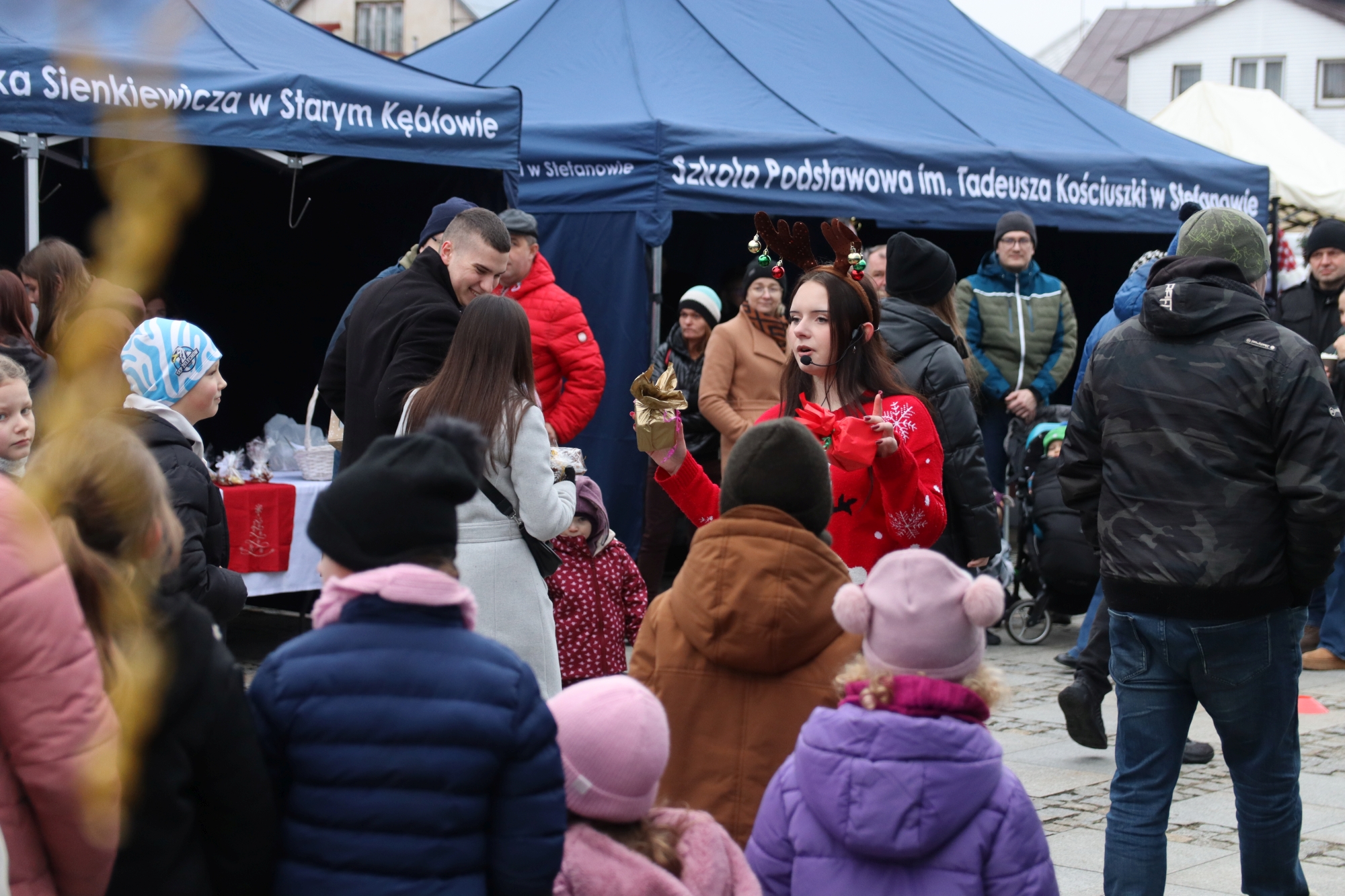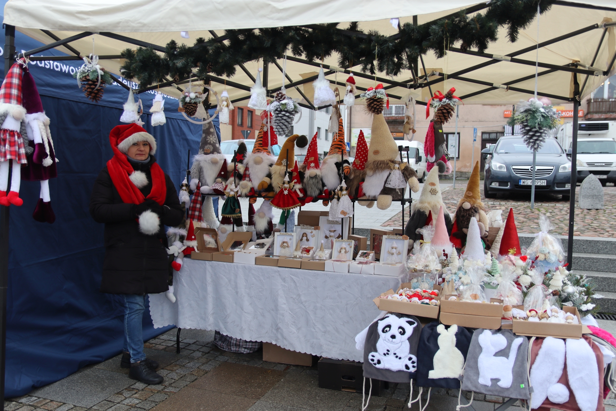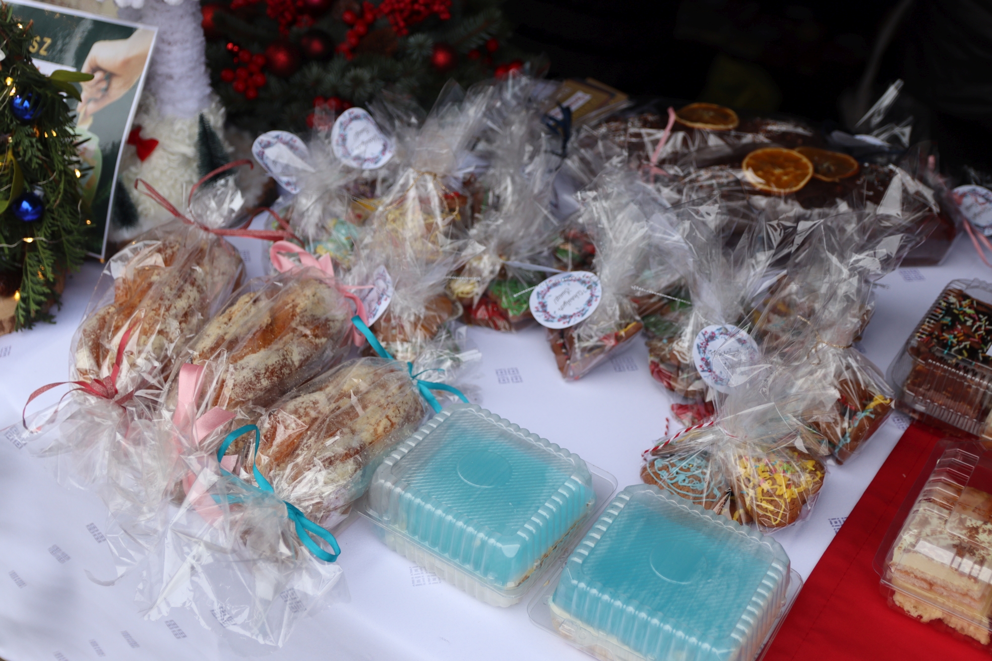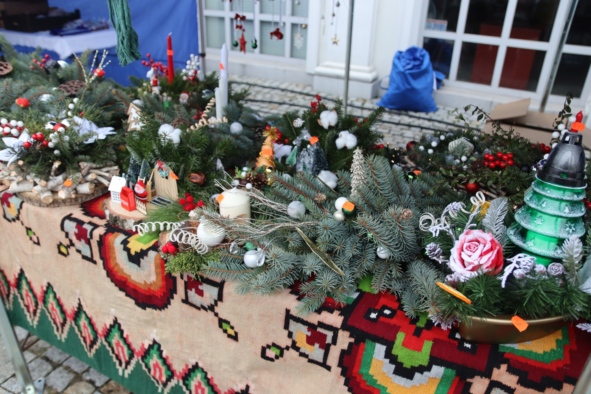 Licznie zgromadzeni mieszkańcy mieli możliwość nabycia różnorodnych wyrobów rękodzielniczych, takich jak stroiki, wianki, ozdoby choinkowe oraz kartki świąteczne. Ponadto na stoiskach można było znaleźć tradycyjne potrawy: pierogi z kapustą i grzybami, uszka, kapustę wigilijną, pasztety świąteczne, domowy chleb, zakwas z kiszonych buraków, olej lniany oraz słodkości w postaci ciast, pierniczków i chatek z piernika. Było również sianko pod wigilijny obrus oraz świąteczna jemioła. Podczas kiermaszu pracownicy MGOK i Biblioteki Publicznej prowadzili jubileuszową loterię, w której można było wylosować m.in. gminne gadżety. Na dzieci czekała bezpłatna atrakcja w postaci ruchomych sań Mikołaja, które unosiły się i kołysały. Dużym zainteresowaniem najmłodszych cieszyły się również zimowe animacje z nagrodami.