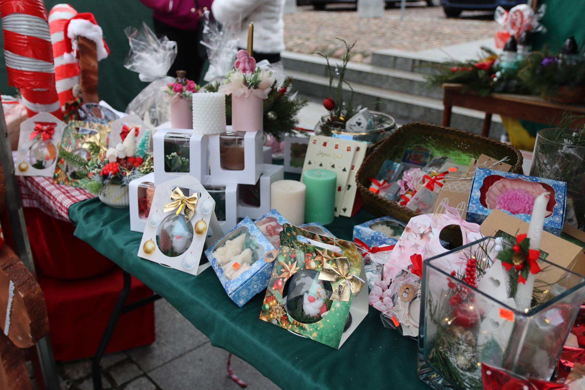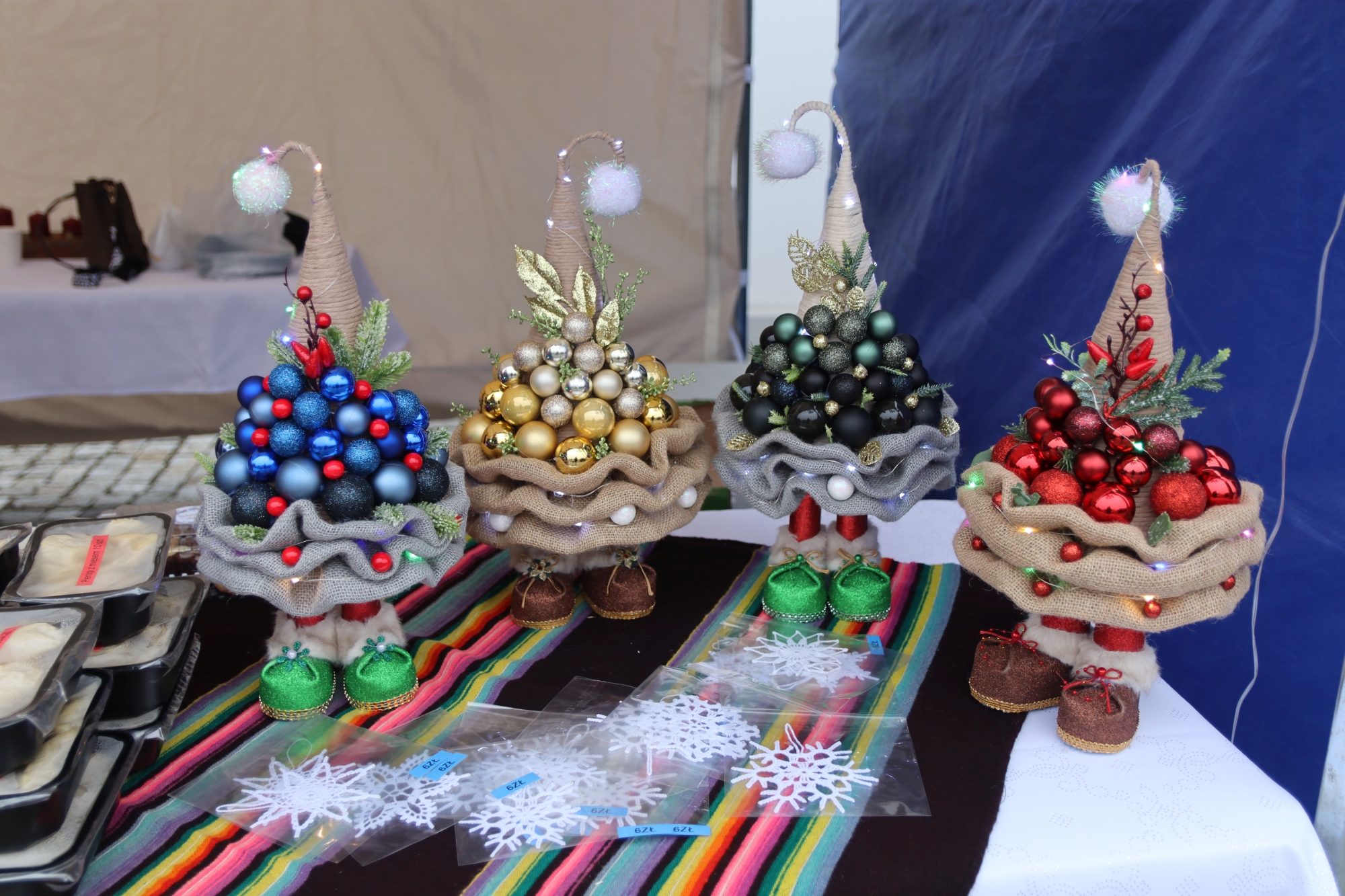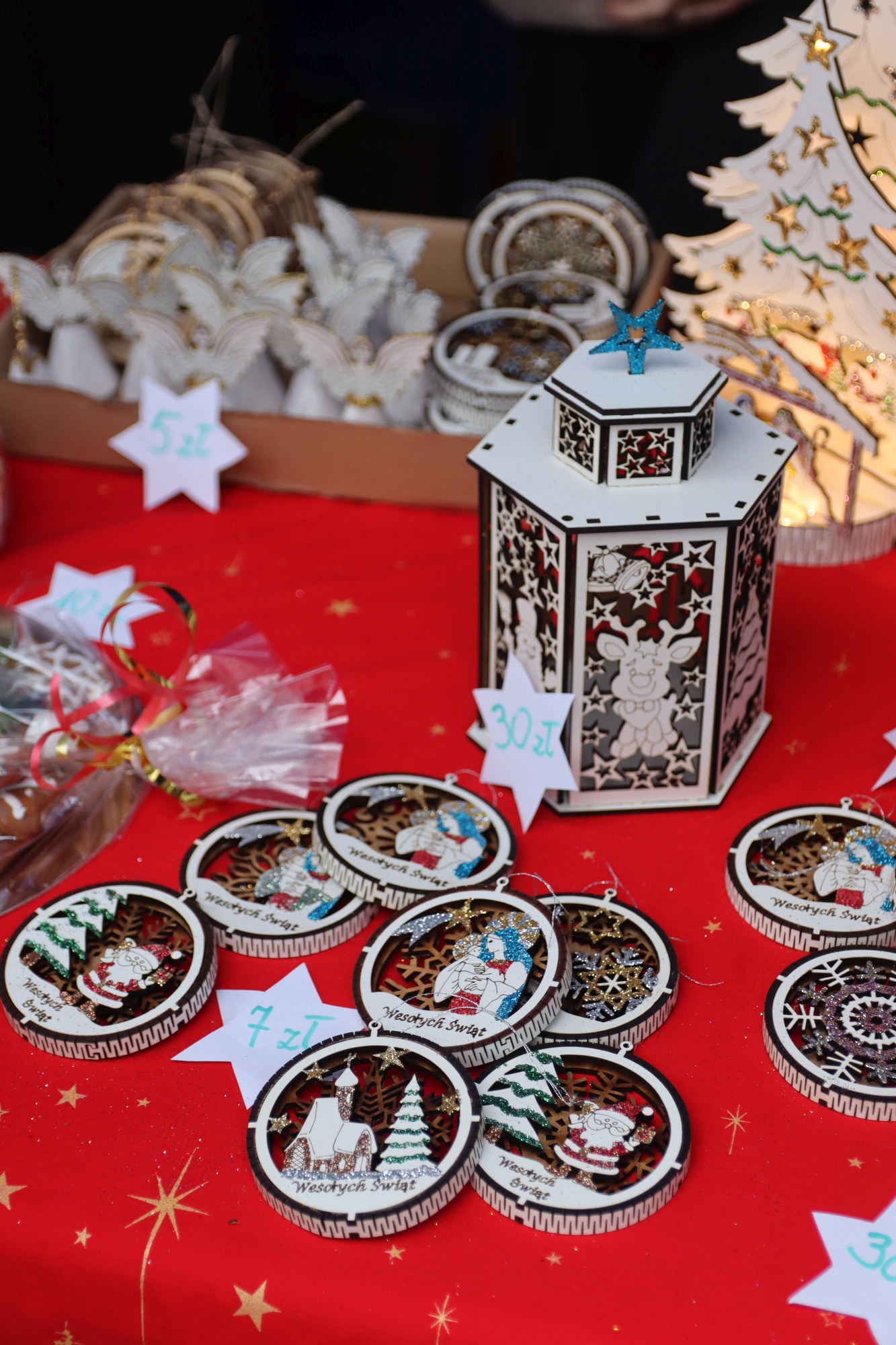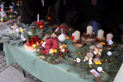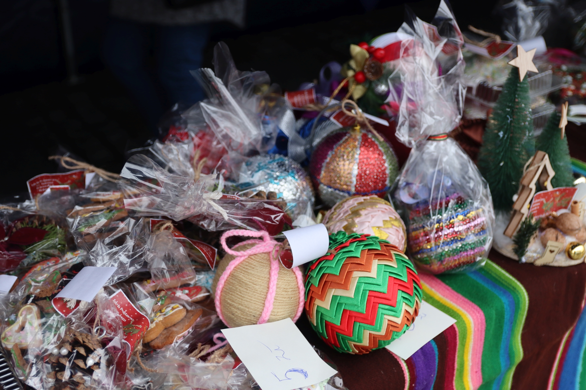 Licznie zgromadzeni mieszkańcy mieli możliwość nabycia różnorodnych wyrobów rękodzielniczych, takich jak stroiki, wianki, ozdoby choinkowe oraz kartki świąteczne. Ponadto na stoiskach można było znaleźć tradycyjne potrawy: pierogi z kapustą i grzybami, uszka, kapustę wigilijną, pasztety świąteczne, domowy chleb, zakwas z kiszonych buraków, olej lniany oraz słodkości w postaci ciast, pierniczków i chatek z piernika. Było również sianko pod wigilijny obrus oraz świąteczna jemioła. Podczas kiermaszu pracownicy MGOK i Biblioteki Publicznej prowadzili jubileuszową loterię, w której można było wylosować m.in. gminne gadżety. Na dzieci czekała bezpłatna atrakcja w postaci ruchomych sań Mikołaja, które unosiły się i kołysały. Dużym zainteresowaniem najmłodszych cieszyły się również zimowe animacje z nagrodami.