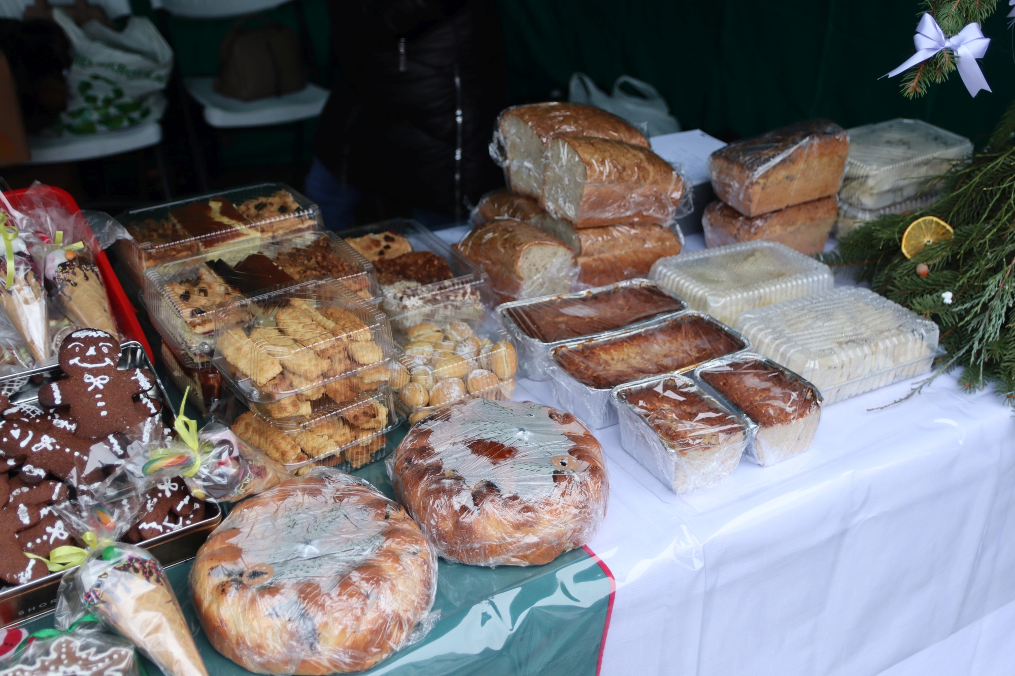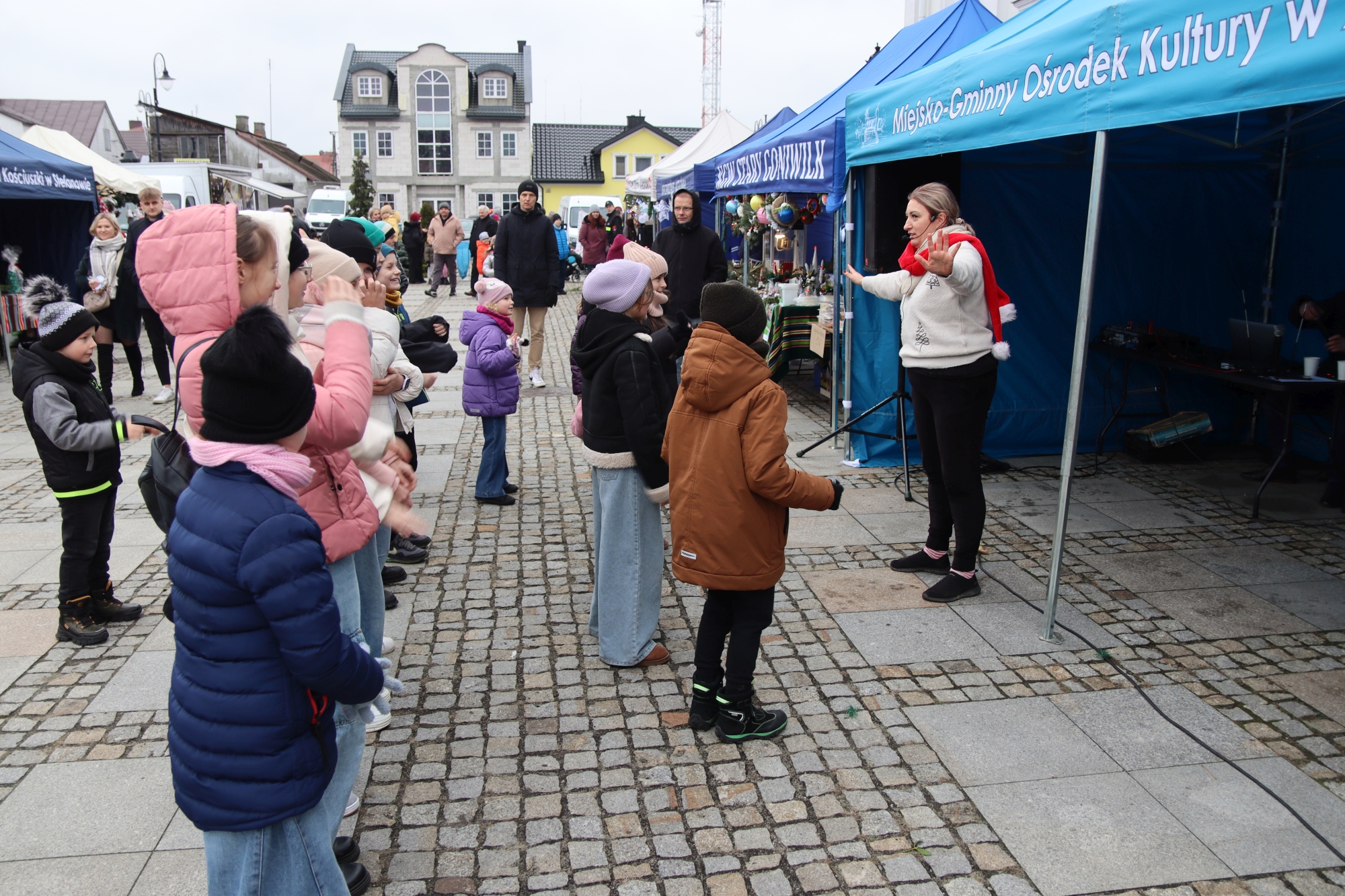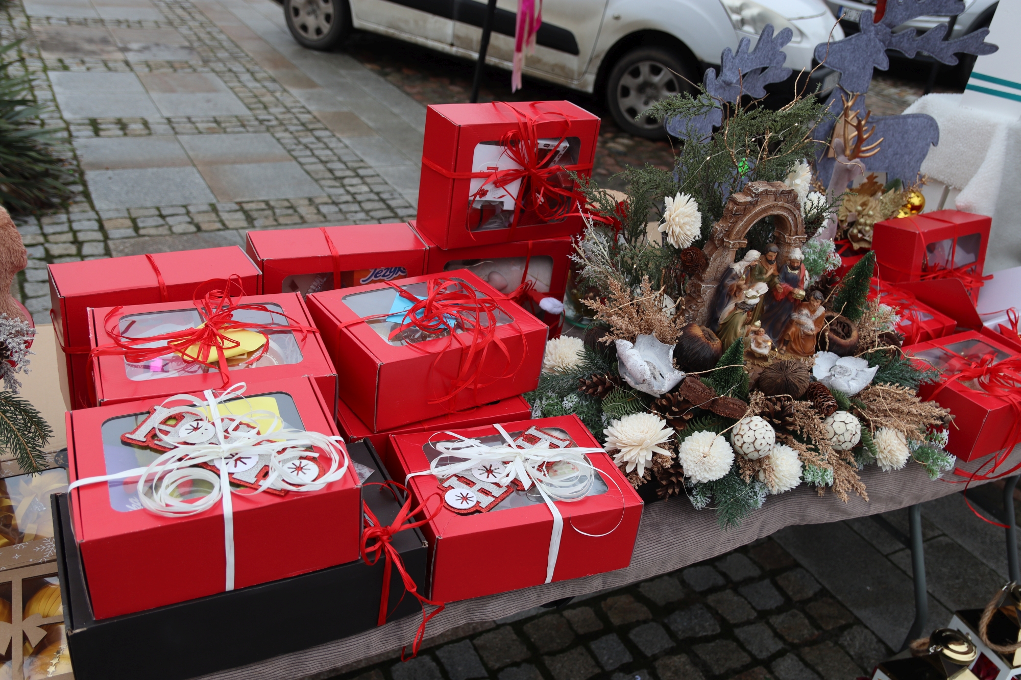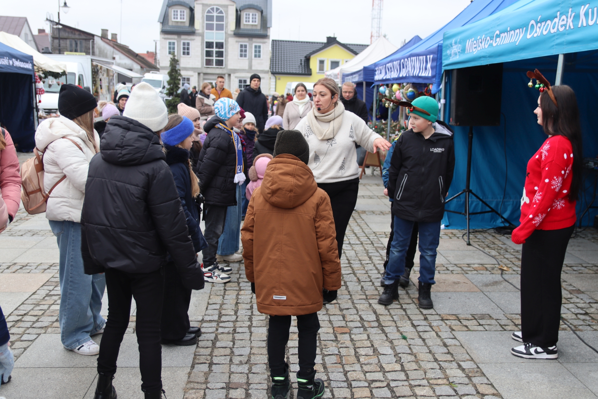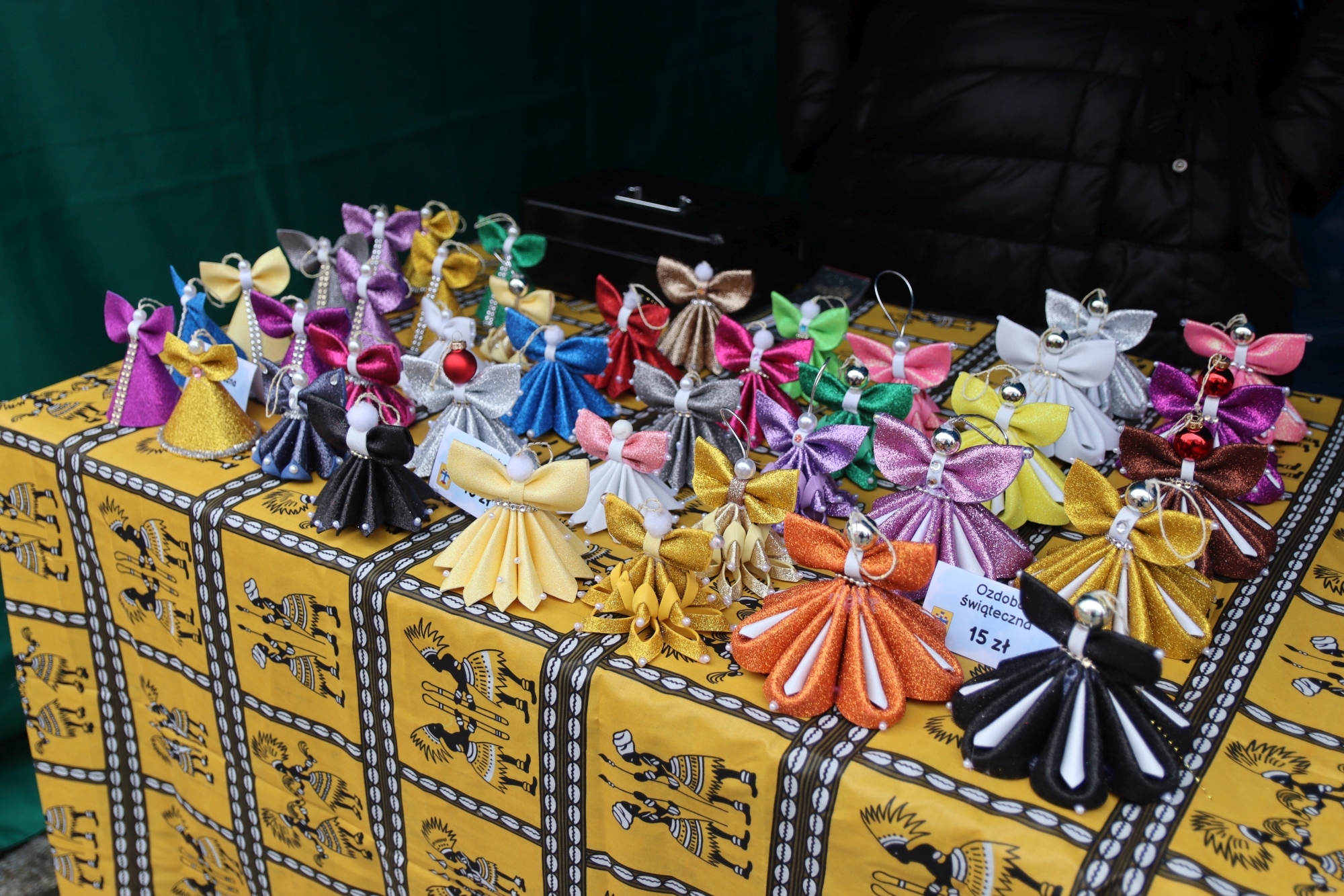 Licznie zgromadzeni mieszkańcy mieli możliwość nabycia różnorodnych wyrobów rękodzielniczych, takich jak stroiki, wianki, ozdoby choinkowe oraz kartki świąteczne. Ponadto na stoiskach można było znaleźć tradycyjne potrawy: pierogi z kapustą i grzybami, uszka, kapustę wigilijną, pasztety świąteczne, domowy chleb, zakwas z kiszonych buraków, olej lniany oraz słodkości w postaci ciast, pierniczków i chatek z piernika. Było również sianko pod wigilijny obrus oraz świąteczna jemioła. Podczas kiermaszu pracownicy MGOK i Biblioteki Publicznej prowadzili jubileuszową loterię, w której można było wylosować m.in. gminne gadżety. Na dzieci czekała bezpłatna atrakcja w postaci ruchomych sań Mikołaja, które unosiły się i kołysały. Dużym zainteresowaniem najmłodszych cieszyły się również zimowe animacje z nagrodami.