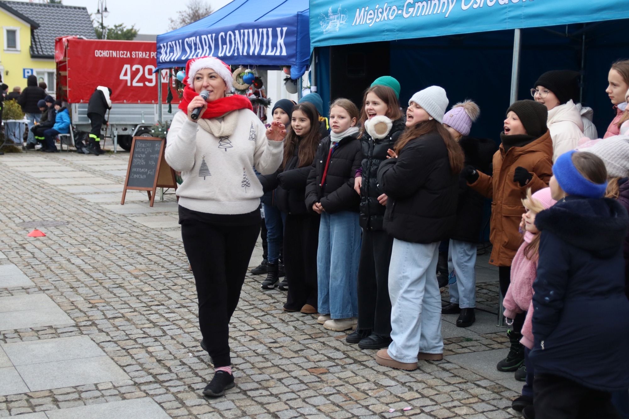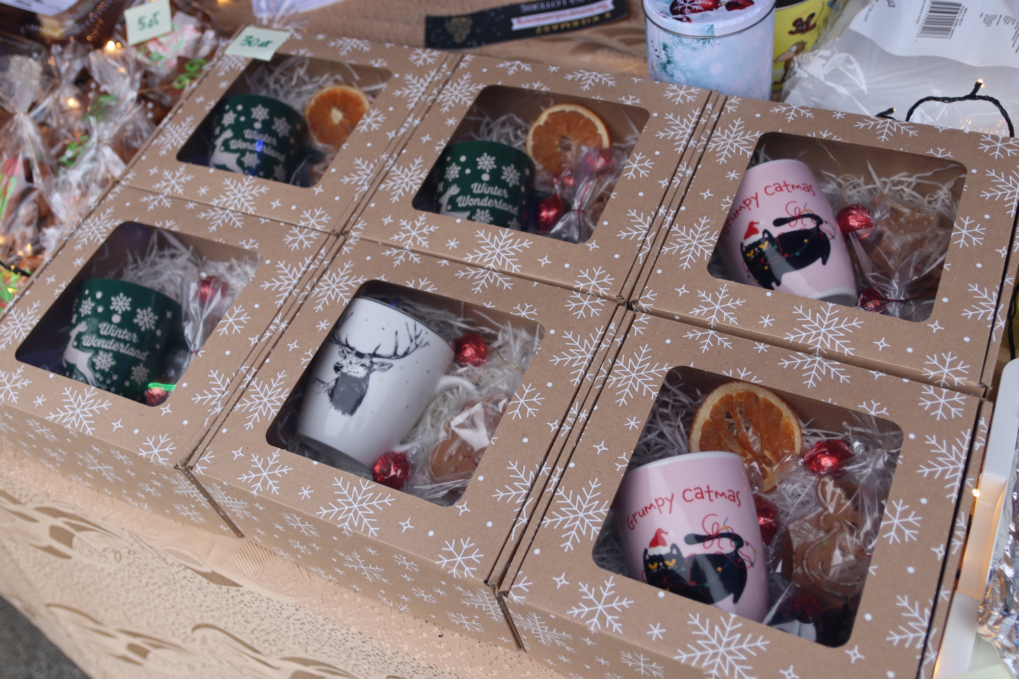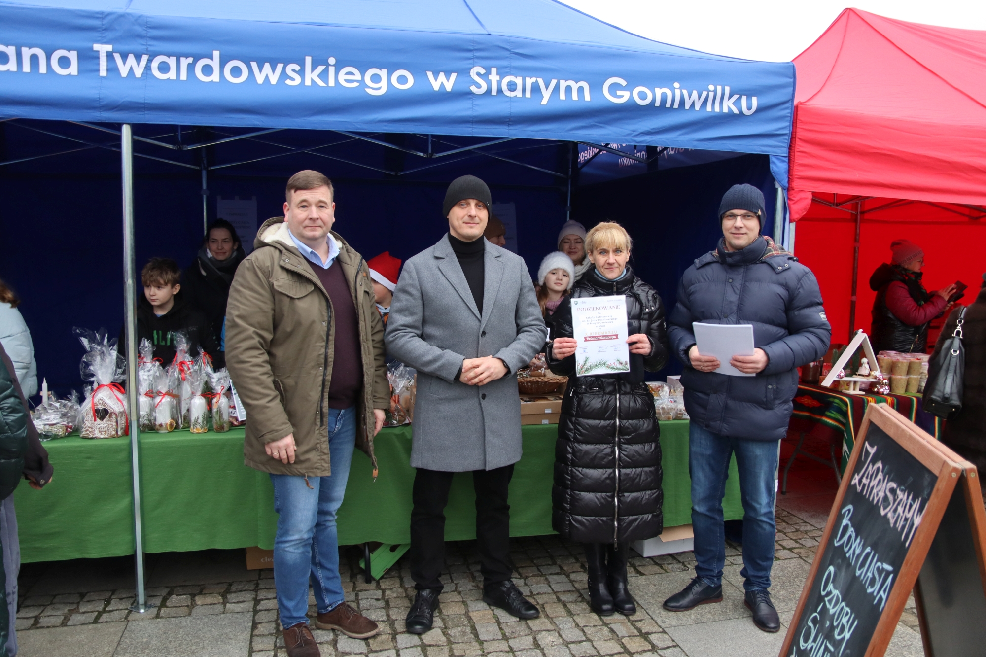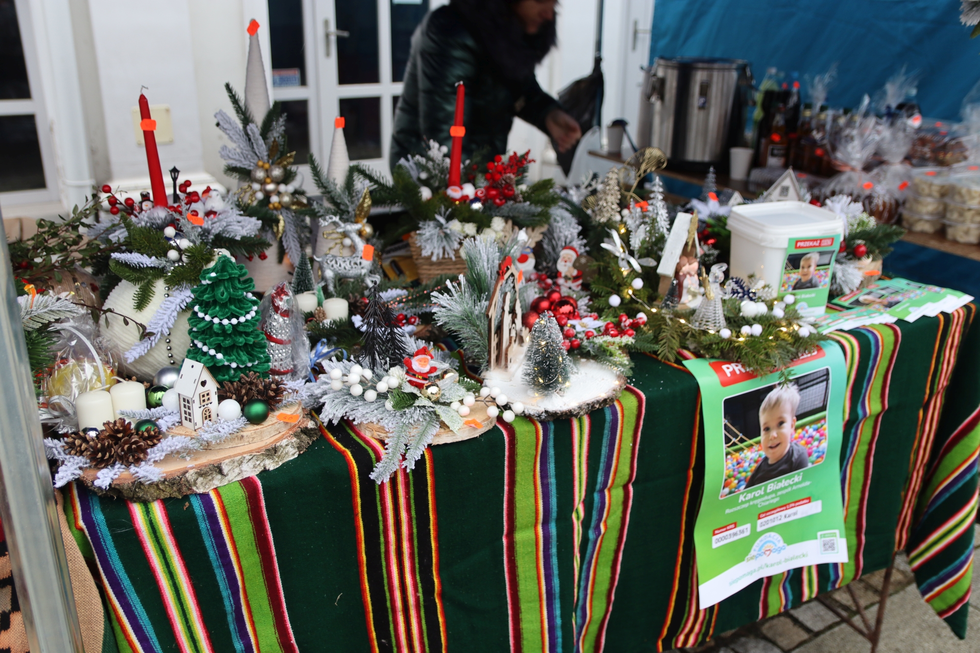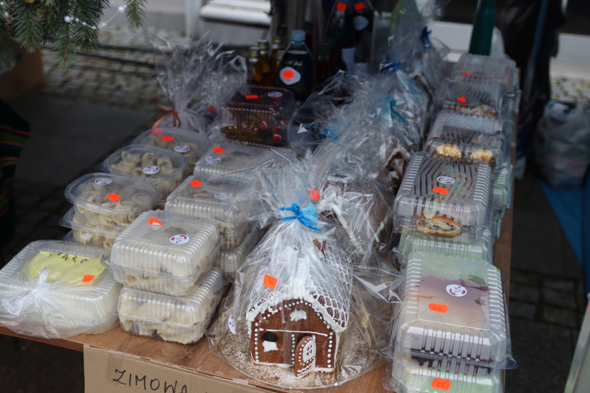 Licznie zgromadzeni mieszkańcy mieli możliwość nabycia różnorodnych wyrobów rękodzielniczych, takich jak stroiki, wianki, ozdoby choinkowe oraz kartki świąteczne. Ponadto na stoiskach można było znaleźć tradycyjne potrawy: pierogi z kapustą i grzybami, uszka, kapustę wigilijną, pasztety świąteczne, domowy chleb, zakwas z kiszonych buraków, olej lniany oraz słodkości w postaci ciast, pierniczków i chatek z piernika. Było również sianko pod wigilijny obrus oraz świąteczna jemioła. Podczas kiermaszu pracownicy MGOK i Biblioteki Publicznej prowadzili jubileuszową loterię, w której można było wylosować m.in. gminne gadżety. Na dzieci czekała bezpłatna atrakcja w postaci ruchomych sań Mikołaja, które unosiły się i kołysały. Dużym zainteresowaniem najmłodszych cieszyły się również zimowe animacje z nagrodami.