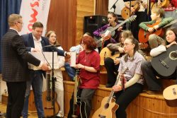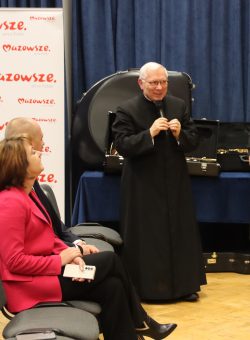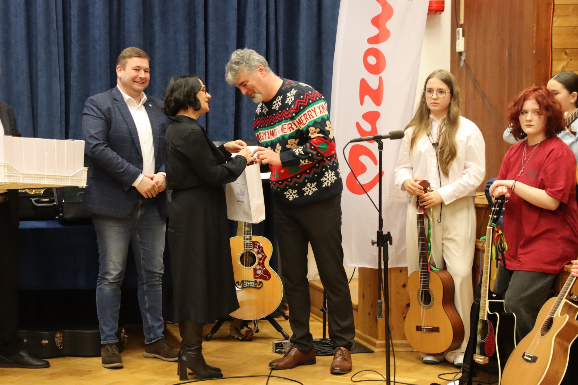 W dalszej kolejności nastąpił uroczysty moment – Członek Zarządu Województwa Mazowieckiego Janina Ewa Orzełowska oficjalnie przekazała orkiestrze nowe instrumenty zakupione dzięki wsparciu Samorządu Województwa Mazowieckiego oraz Gminy Żelechów w ramach programu „Mazowsze dla orkiestr”.