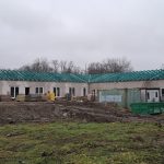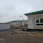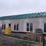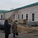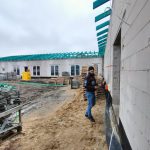 Aktualnie wykonawca prowadzi intensywne prace konstrukcyjne. Trwa montaż więźby dachowej oraz wykonywane jest pokrycie dachu, co stanowi jeden z najważniejszych etapów zamykania bryły budynku. Równolegle prowadzone są roboty wewnętrzne — ekipy budowlane montują ścianki działowe, które wyznaczą docelowy układ pomieszczeń przeznaczonych na sale opieki, zaplecze techniczne i część administracyjną.
