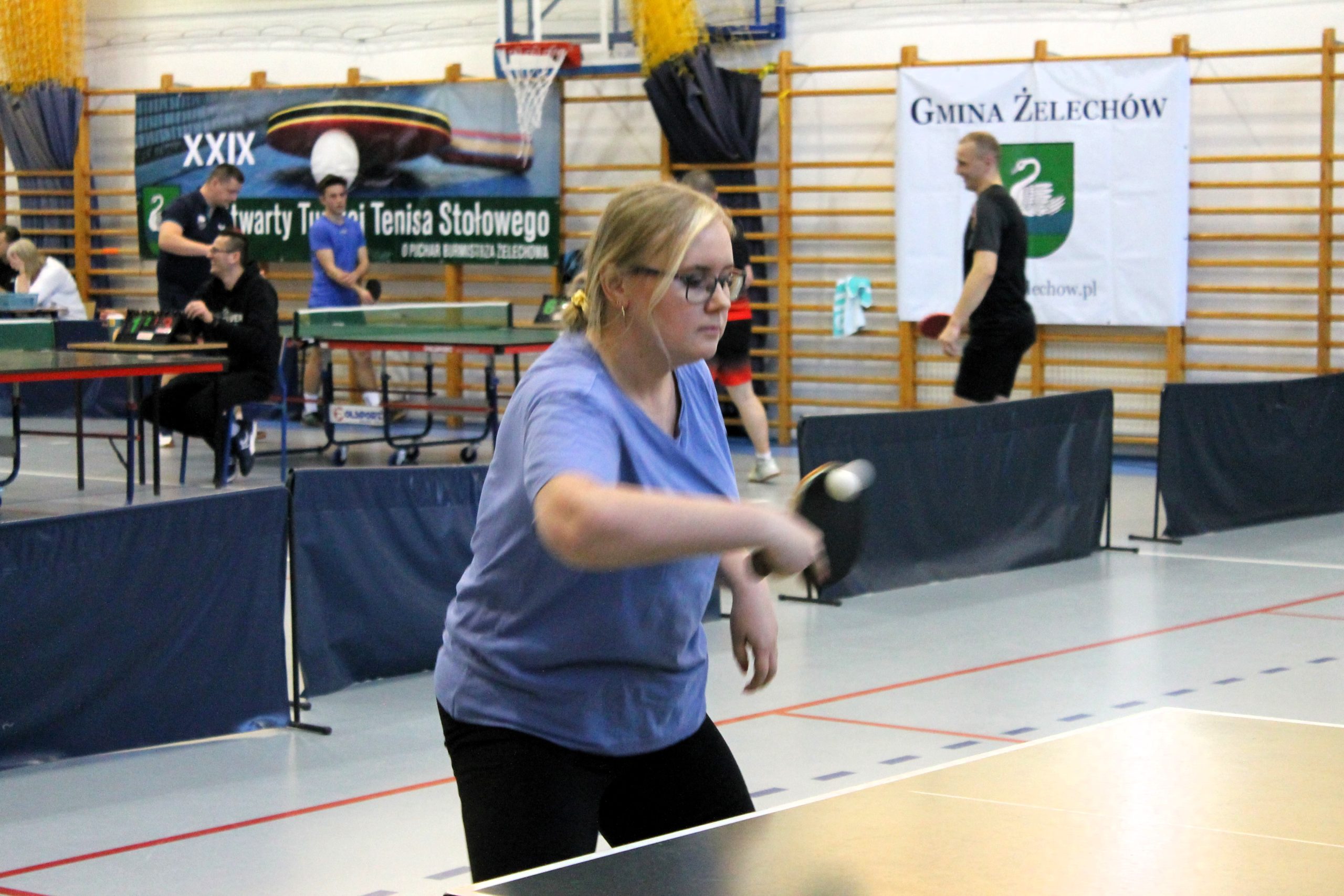 W drugiej części XXIX Turnieju Tenisa Stołowego o Puchar Burmistrza Żelechowa do rywalizacji przystąpili uczniowie szkół średnich oraz zawodniczki i zawodnicy startujący w kategoriach OPEN kobiet i mężczyzn.