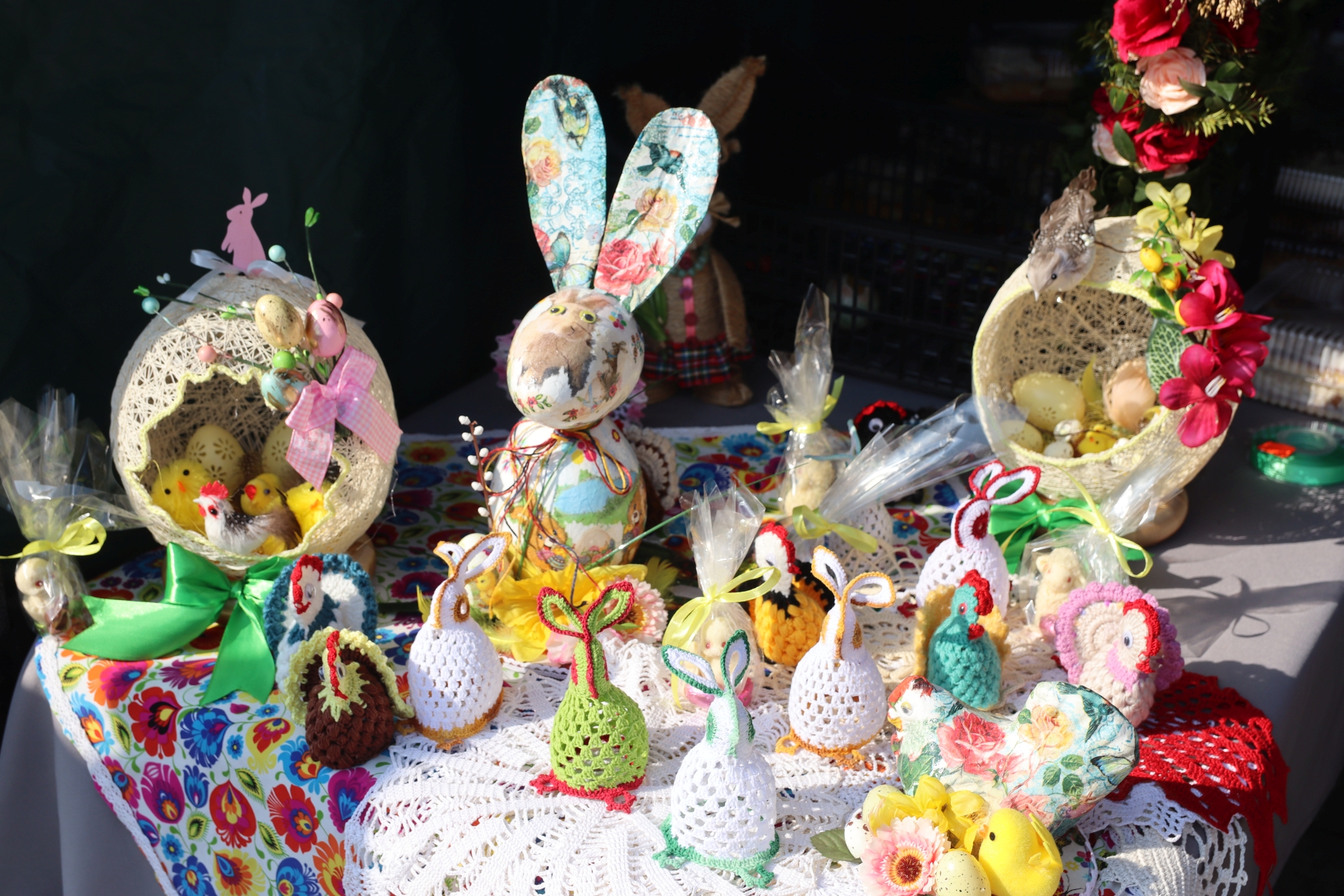 Na kiermaszu można było znaleźć różnorodne stroiki, palmy, pisanki oraz inne ozdoby wielkanocne, wykonane z ogromną starannością i pomysłowością. Nie zabrakło także pysznych smakołyków i tradycyjnych wyrobów, które cieszyły się dużym zainteresowaniem.